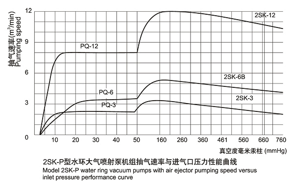 Model 2SK-P water ring vacuum pumps with air ejector main per-formanle-para meter table
