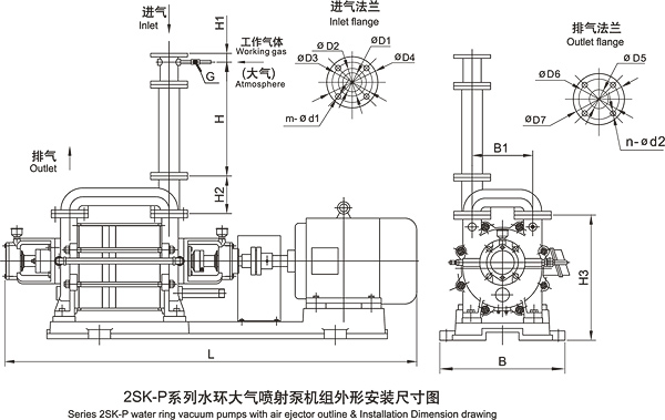 Model 2SK-P pump outline & lnstallation dimension drawing