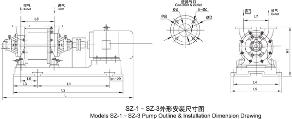 | 型號 | L1 | L2 | L3 | L4 | L5 | L6 | L7 | L8 | L9 | L | H1 | H | D | d | B | n-Øc | m-Øk |
