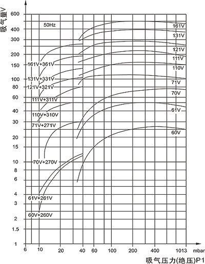 1.上表中所列性能參數(shù)及性能曲線(下圖)是在吸入介質(zhì)為20℃的飽和空氣,工作液溫度為15℃,排氣壓力為1013mbar的狀態(tài)下得到的。性能允許差±10%。